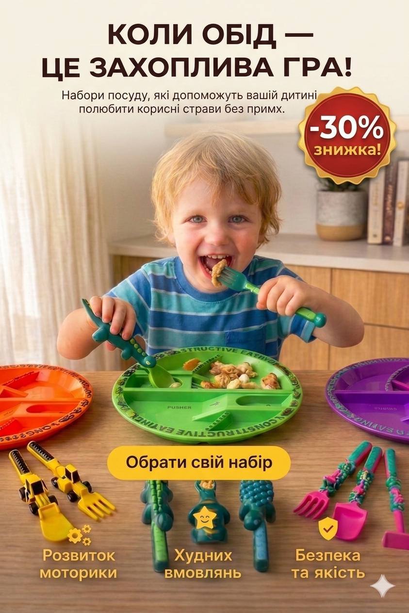 🎄Стимулює самостійність-дитина з цікавістю вчиться їсти сама. ⭐Розвиває дрібну моторику-тренує координацію рук, хват і точність рухів. 🥄Перетворює їжу на пригоду-зникають капризи й небажання сидіти за столом. 🎉Якісний та безпечний матеріал(ВРА FRee)-не містить токсичних речовин. 🌈Можна мити в посудомийці - легко доглядати, не тьмяніє і не деформується. ♥️Підходить длямікрохвильовки - можна швидко розігріти страву 🔥 Вигідна пропозиція — знижка -30%.